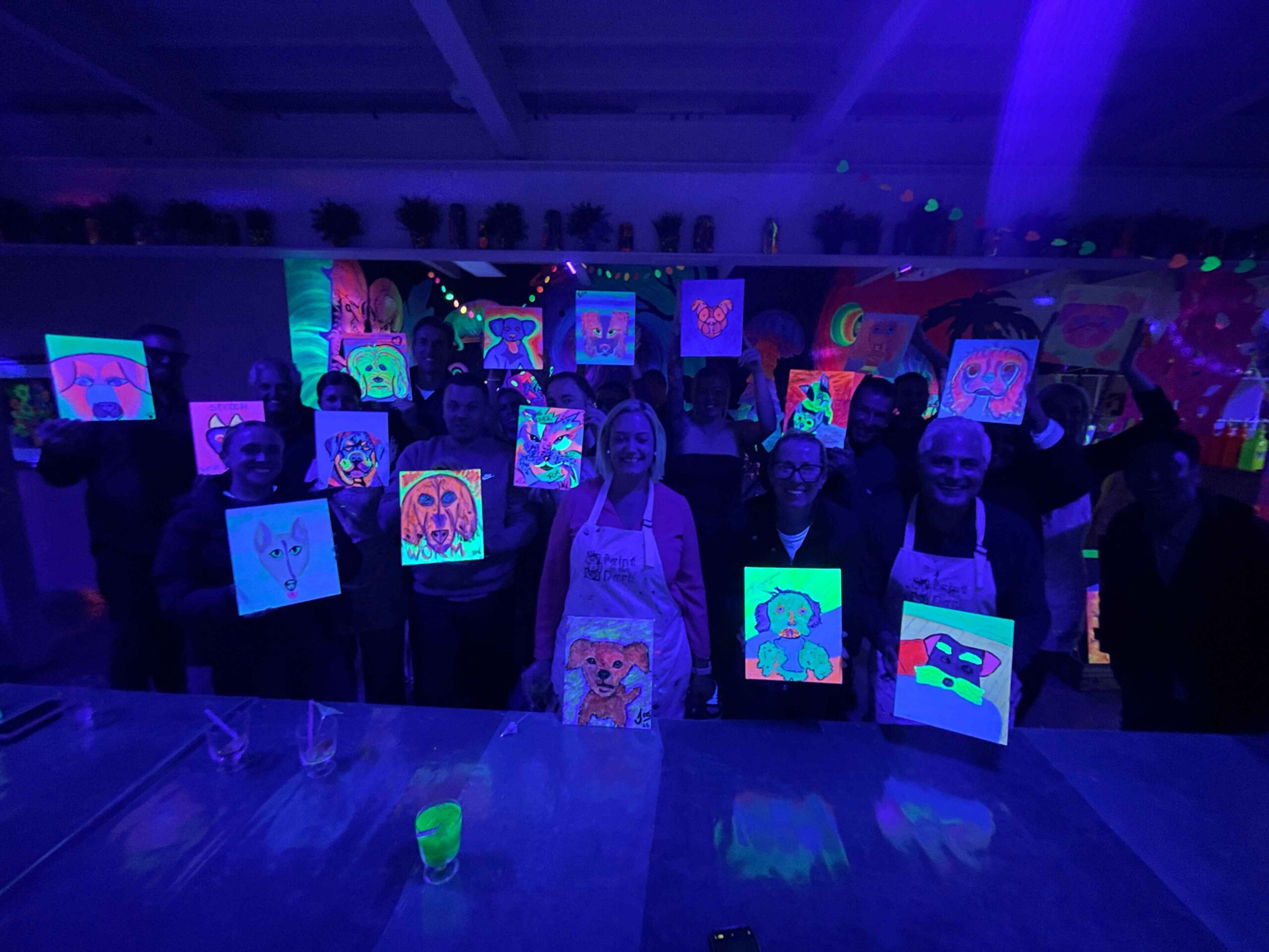 Prime100 joined Dya Australia for a vibrant, hands-on session that combined fun team-building activities and artistic expression. The evening included painting pet portraits under UV lights and a cocktail-making class, two of the most memorable activities for adults in Melbourne. This wasn’t your typical team meeting; it was a creative activity designed to break down barriers and bring colleagues together in a relaxed, engaging space. The shared creative process inspired conversation, laughter, and deeper connections.